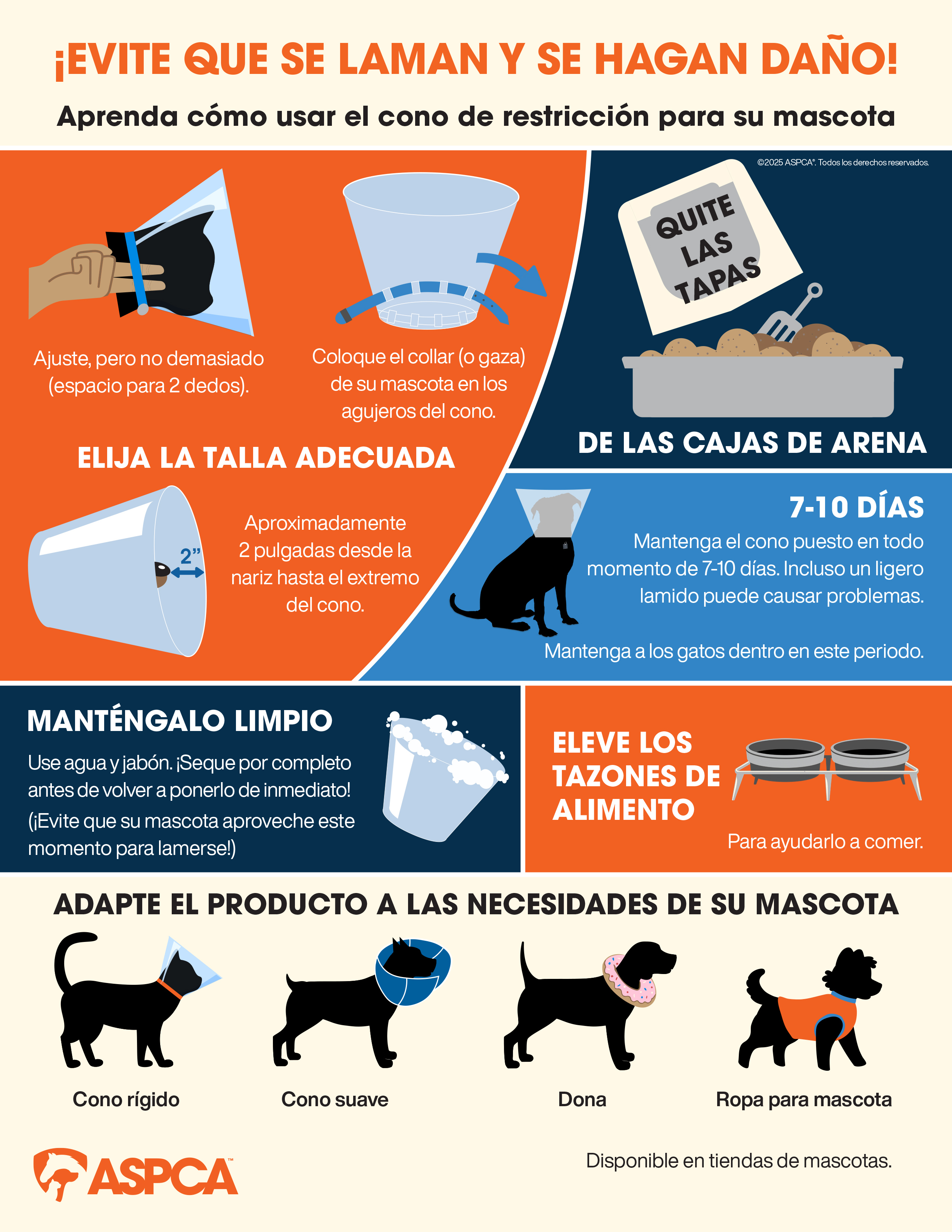 Prevent your pet from licking or chewing the incision site. Licking may cause the incision to become infected or open, which will likely require follow-up visits at a veterinary clinic at considerable cost. If your pet is licking, we recommend you distract your pet with treats, then contact us at (855) 434-9285 or [email protected] and arrange a time to return to our facility to pick up an Elizabethan collar, free of charge. This will prevent your pet from being able to reach the area. You can also purchase one of these collars at a veterinary clinic or pet store of your choice. If your pet is still able to lick the surgery site while wearing an Elizabethan collar, choose a larger collar or contact us at (855) 434-9285 for further assistance.