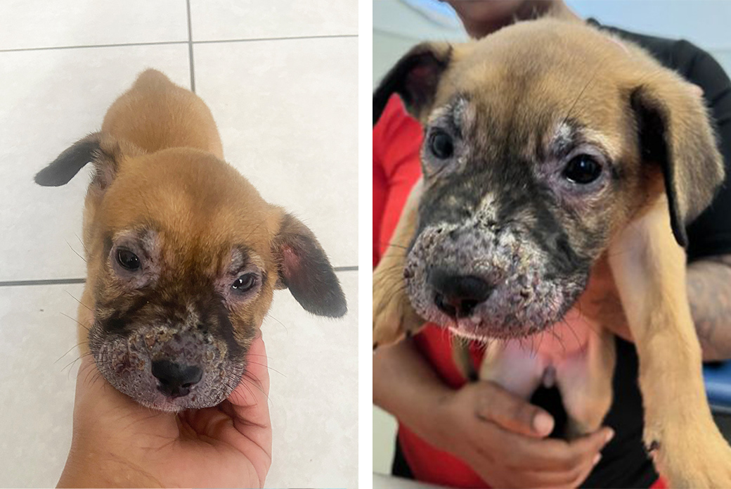 Puppy strangles usually affects puppies between one and six months of age. The first sign is acute swelling of the face and muzzle, which Dior experienced. The swelling is typically followed by the development of raised bumps and pustules on the animal’s face, muzzle and ears, which can spread to other parts of the body if not treated.