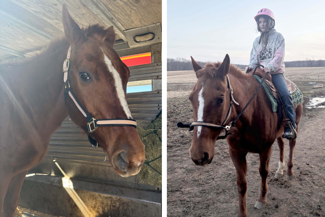 “She’s been into horses since she was born,” says Eden’s mother, Cheri. “When she was a year old, we’d be in a toy department, and she’d want the toy horses. She had a rocking horse, and at age 4 was into unicorns. Now, at 10, Eden is in a 4-H horse program, and her instructor encouraged us to adopt a horse.”