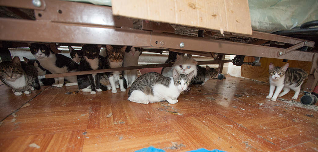 Animal “hoarding” can be identified when a person is housing more animals than they can adequately and appropriately care for. It is a complex issue that often encompasses mental health, animal welfare and public safety concerns. Animal hoarding is defined by an inability to provide even minimal standards of nutrition, sanitation, shelter and veterinary care—often resulting in over-breeding of animals, animal starvation, illness and even death. In some cases, guardians believe they are helping their animals and deny this inability to provide minimum care.