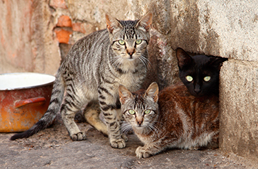 Some community cats are actually stray cats who don't exhibit feral behaviors but rather are friendly and enjoy interaction with humans. These cats were likely once owned or have a caretaker who frequently cares for and interacts with them. It is very important to take caution, especially with cats who seem to straddle the fence between a community cat and a stray cat. Even though they might encourage petting or follow you around, they could likely be inadequately prepared for adoption and an indoor life. These cats don’t need intervention, other than TNRM, unless they’re ill or injured. Talking to local community members about the history of a specific cat or group of cats in the neighborhood may help you discern if the cat is being cared for and how you can best help.