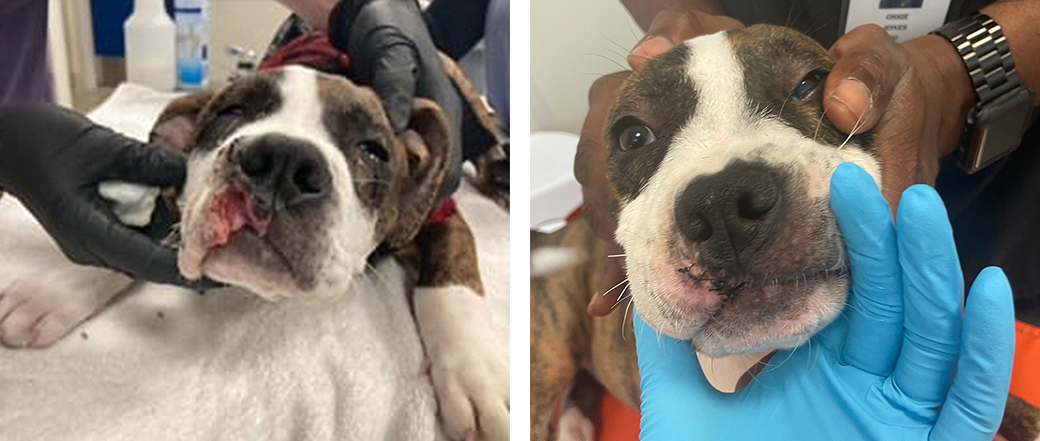 Dr. Koehler worked quickly with the medical team to clean and stitch wounds on Bullet’s snout and neck. She also administered vaccines.