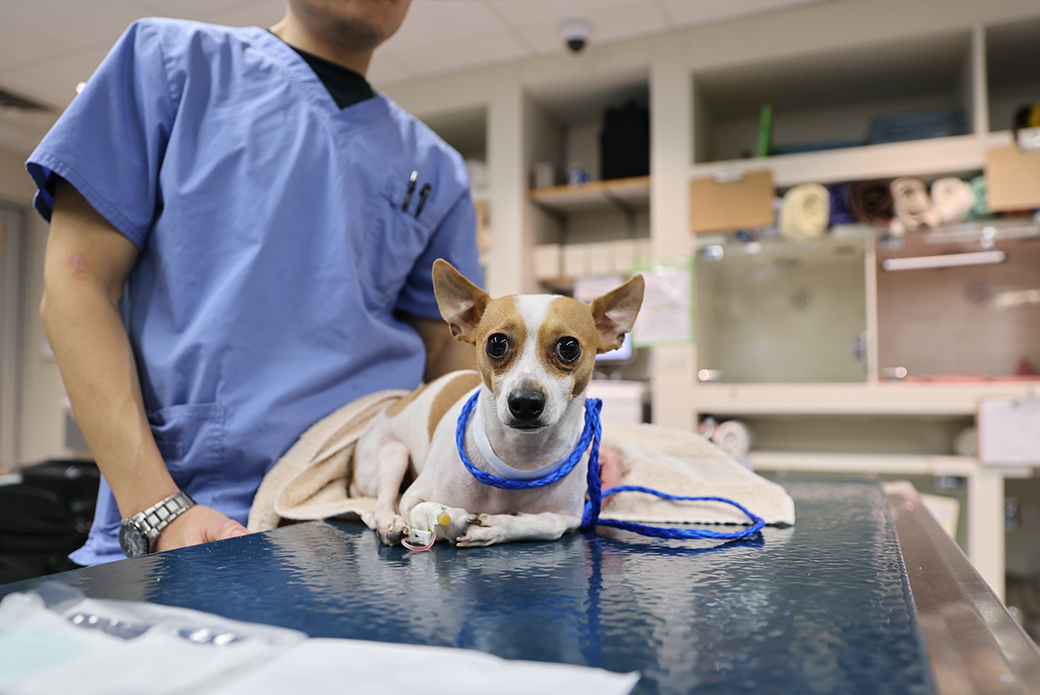 “Wendy brought Rocky to us in a little basket with a blanket,” says Dr. Pandya. “He was in pain and didn't want to move, and he was urinary incontinent. We carefully cleaned his basket and made him comfortable.”
