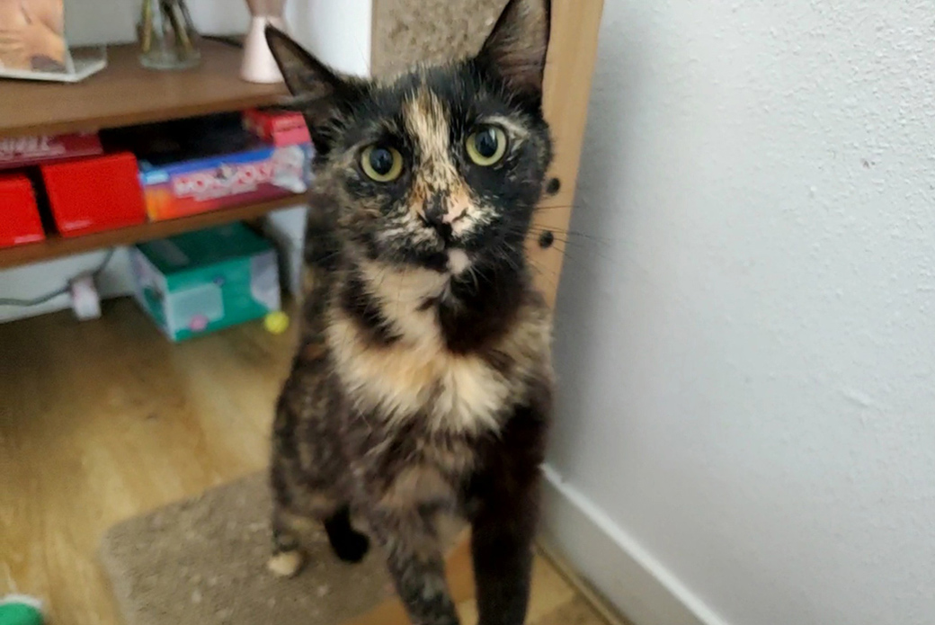 Momo has all the best feline features – she’s smart, affectionate and adorable! She can be a bit shy with new faces, but once she gets to know someone, she loves to get pets from them. You can usually find her napping in a sunbeam or parading around the house with one of her favorite toys! She’s a quirky, confident girl who can’t wait to meet you. Find out more about Momo by visiting her profile!