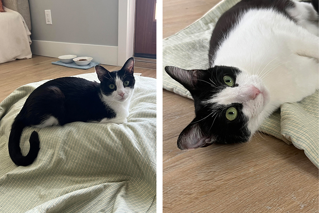 This kitty is a true lap cat! Sparkles is a young girl who just wants to curl up in your lap for the best nap. Don’t worry, she loves to play too! She’ll even follow you around the house to make sure she doesn’t miss out on anything fun. Sparkles is currently on a special diet for her GI health, but nothing slows her down! She is currently in foster with her sister, Charlotte, and they could go home together or into separate homes. Learn more about Sparkles on her profile!