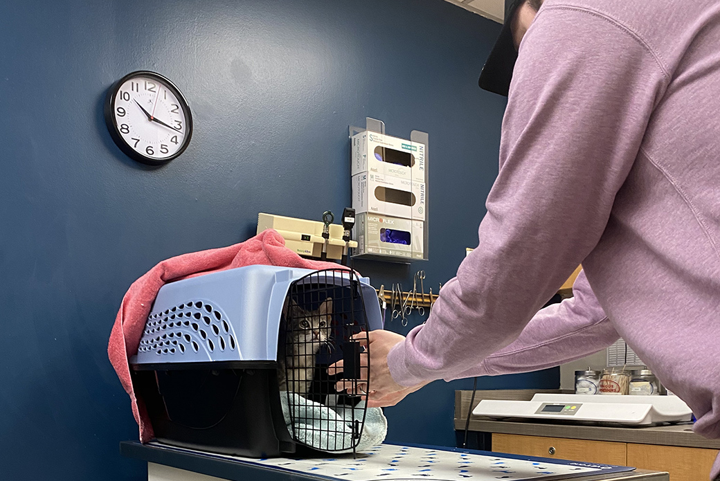 While waiting for Dorian to reach the proper weight for his procedure, Manuel and Dennis kept him on cage rest or in a playpen. He was allowed to have very limited, supervised playtime – which for a tiny, playful kitten, was no easy feat.