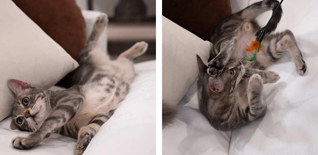 “Because Dorian was such a young cat, he has amazing kitten healing powers,” explained Dr. Gayle. “He was running around the exam room, playing, and doing really, really well. He allowed me to extend both hips, they weren’t bothering him at all. So, we elected to not pursue surgery in his case.”