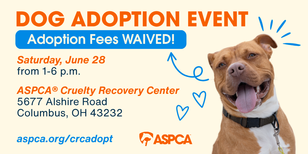 Join us on Saturday, June 28, for a FREE adoption event at the ASPCA Cruelty Recovery Center in Columbus, Ohio! We have SO MANY dogs who have been waiting to find the loving homes they deserve, so all adoption fees will be waived during this event.